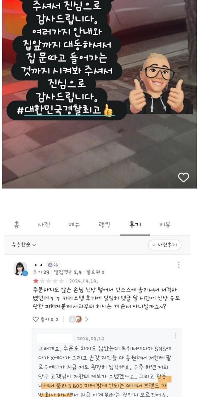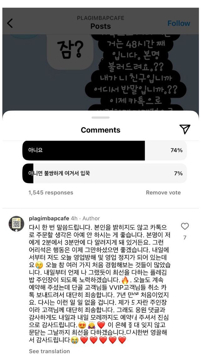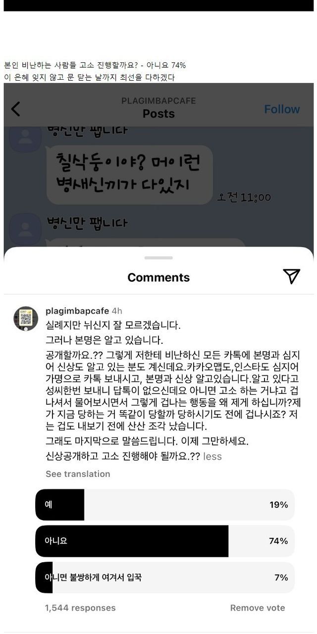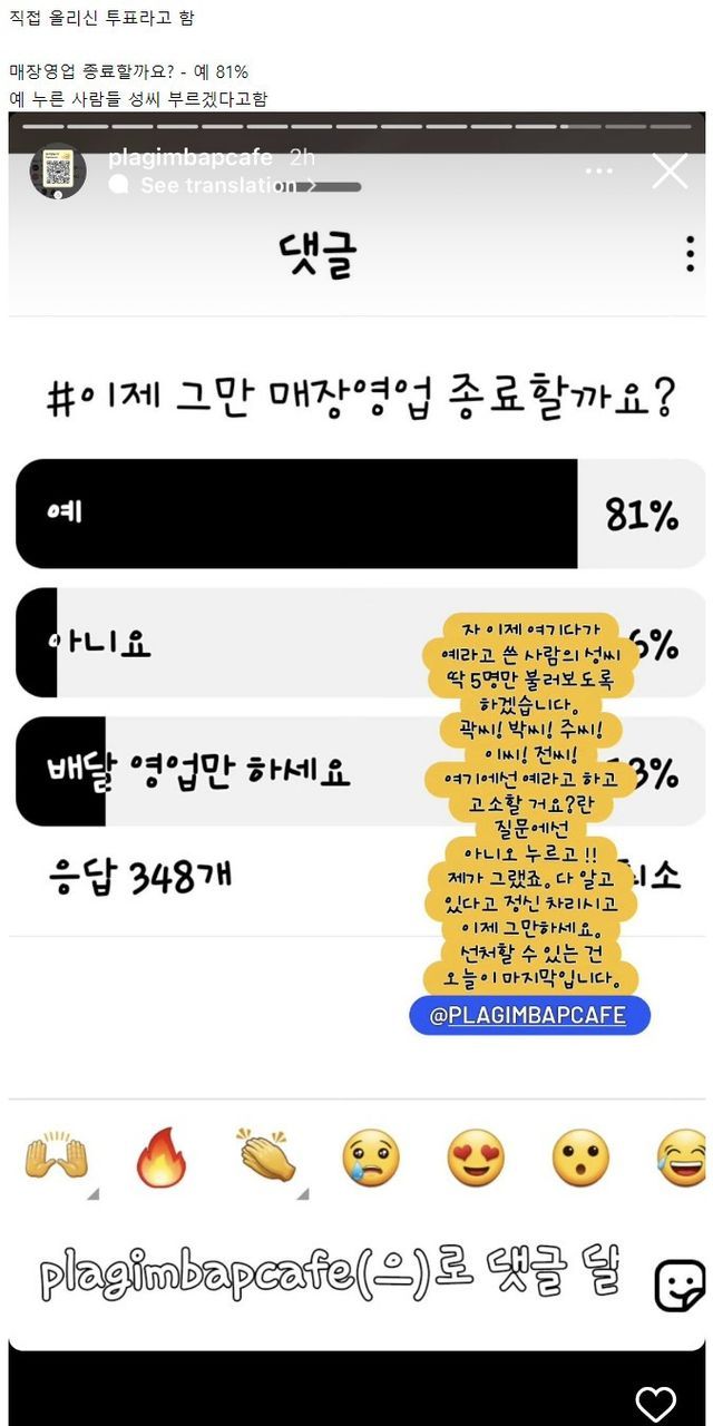 김밥집 사장님 인스타에서 진행중인 투표