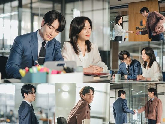 이와 관련 공개된 스틸컷 속에는 ‘피플즈’를 찾아온 정혁을 응대하고 있는 지윤과 은호의 모습이 담겨 있다. 대표로서 프로페셔널함을 장착한 지윤과 그 옆에서 완벽하게 지원 사격하는 비서 은호. 달라진 것이 있다면 지윤을 바라보는 은호의 사랑스러운 눈빛이다. 그런데 정혁과 악수를 나누는 은호의 감정이 심상치 않아 보인다. 겉으로는 신사적으로 보이나, 두 남자의 신경전이 이미지만 봐도 느껴지는 것.