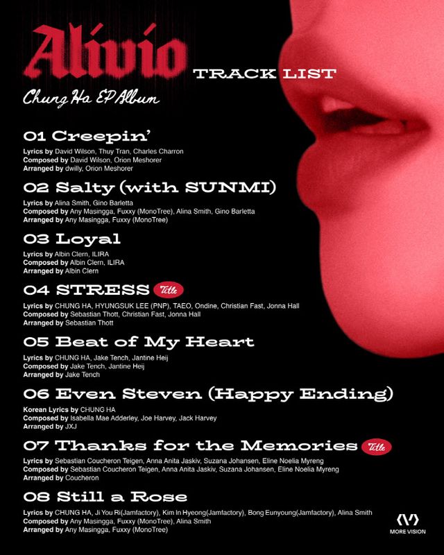 트랙리스트에 따르면 이번 앨범에는 더블 타이틀곡 ‘스트레스’(STRESS)와 ‘땡스 포 더 메모리즈’(Thanks for the Memories)를 비롯해 ‘크리핀’(Creepin), ‘솔티’(Salty), ‘로얄’(Loyal), ‘비트 오브 마이 하트’(Beat of My Heart), ‘이븐 스티븐 (해피 엔딩)’(Even Steven (Happy Ending)), ‘스틸 어 로즈’(Still A Rose)까지 총 8개의 트랙이 수록된다.