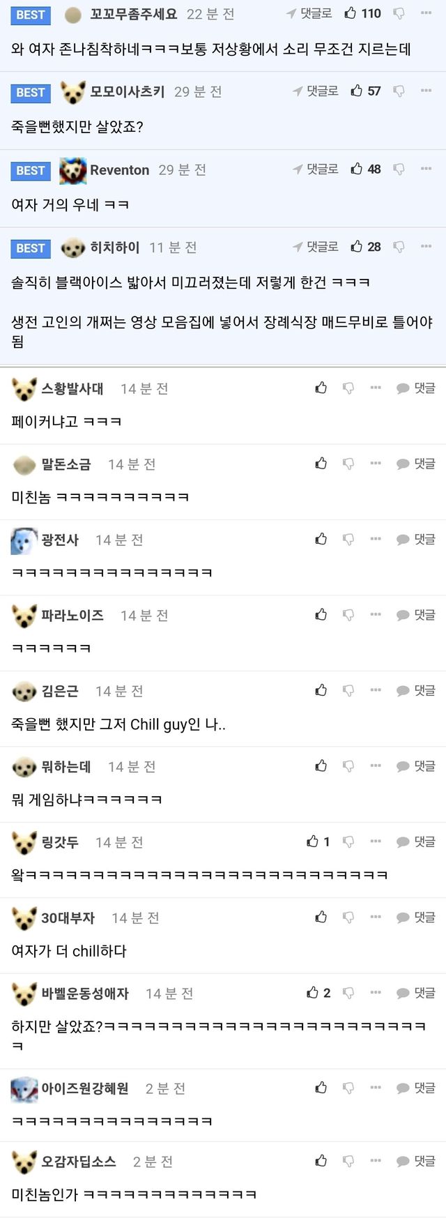 운전 중 죽을 뻔 한 상황에서 chill guy의 한마디