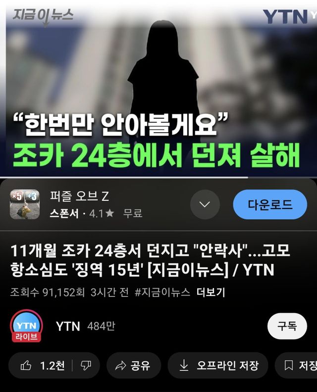 11개월된 조카를 24층에서 던져 죽인 고모, 징역 15년