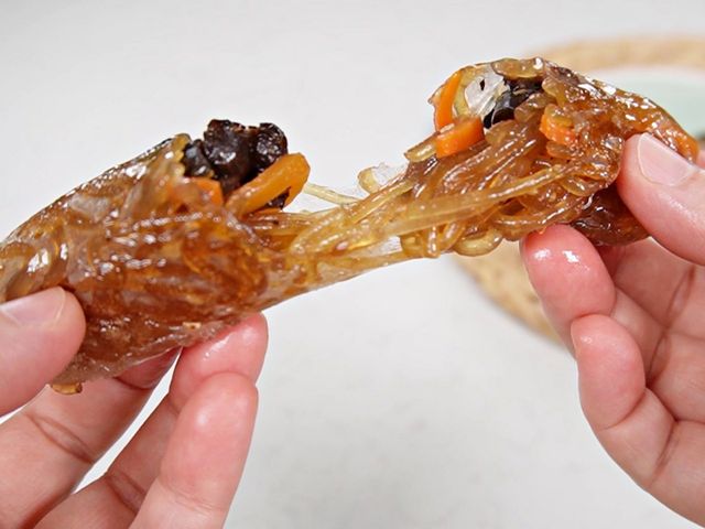 잡채를 너무 많이 넣으면 롤이 터질수도 있어요.