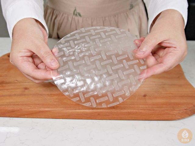 라이스페이퍼를 따뜻한 물에 담갔다가 펼쳐주시고요.