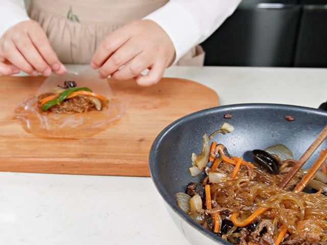 남은 잡채를 라이스페이퍼에 넣었더니 다들 맛있다고 난리에요!