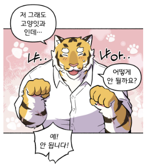 작은 소동물인 다람쥐가 운영하는 카페에서도 호랑이인 호석을 받아 줄 수 있을 리 없었죠.
