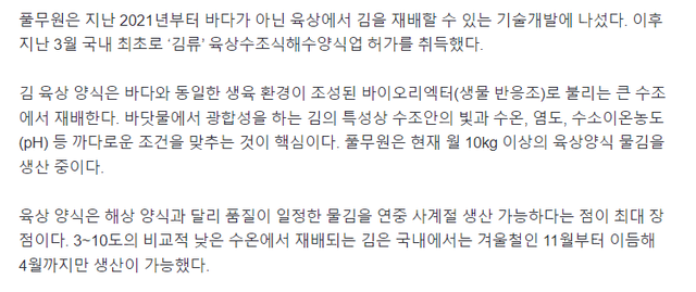 풀무원이 국내 최초로 육상에서 양식한 김을 제품화