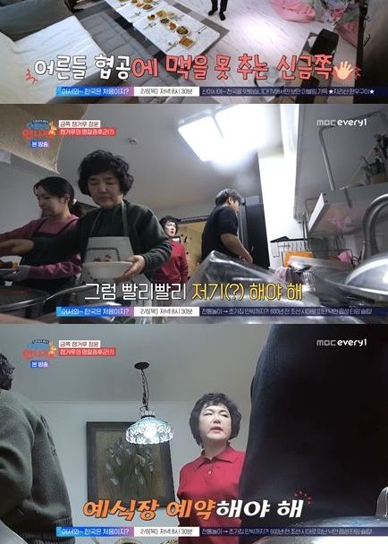 어머니의 끝없는 생선 대가리 손질에, 신정윤이 대신 나섰다. 신정윤은 기세 넘치게 쌍칼을 들고는 비트를 타면서 생선을 다지는 모습으로 실소를 유발했다.