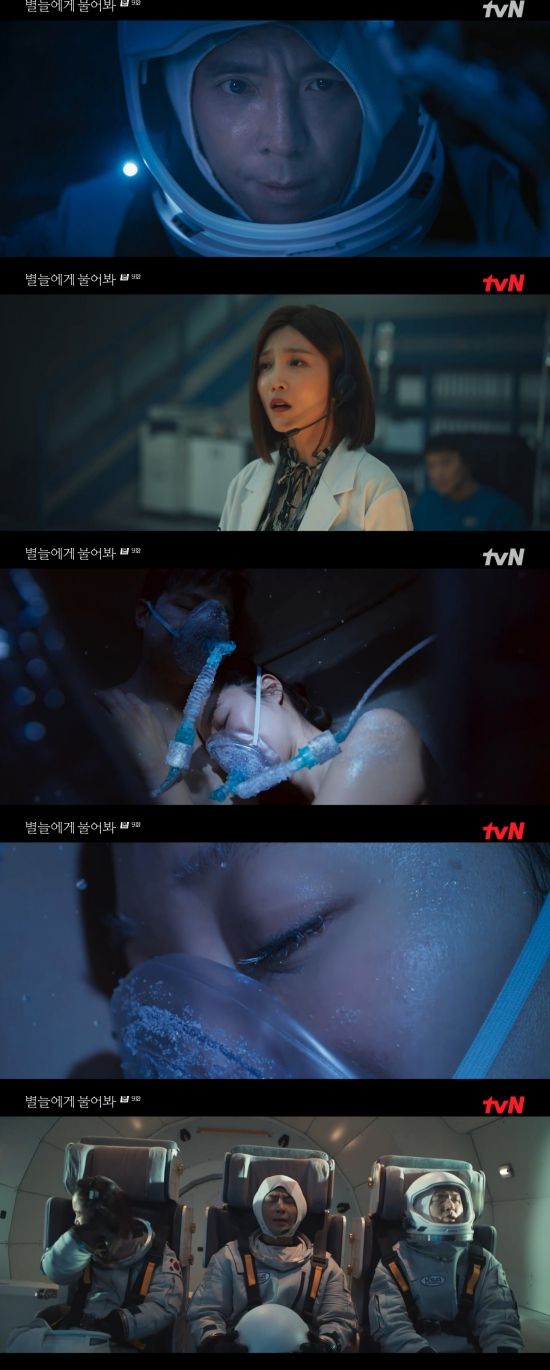 1일 방송된 tvN 토일드라마 '별들에게 물어봐' 9회에서는 박동아(김주헌 분)가 이브 킴(공효진)과 공룡(이민호)을 구조한 모습이 그려졌다.