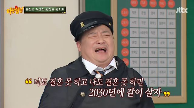 그러면서 "그때 우스갯소리로 '너도 결혼 못 하고, 나도 결혼 못 하면 2030년에 결혼 하자'라고 했다. 그런데 2030년이 얼마 안 남은 거다"라며 심각한 표정을 했다.