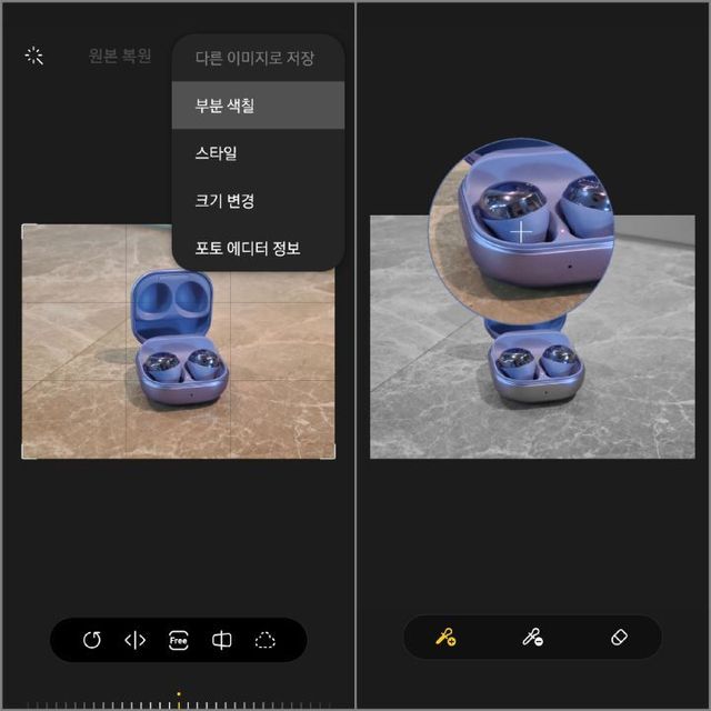 갤러리에서 왼쪽 아래에 두번째 사진편집을 누른 후