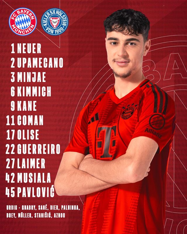 뮌헨은 4-2-3-1 전형으로 나섰다. 마누엘 노이어 골키퍼가 장갑을 꼈고 콘라트 라이머, 다요 우파메카노, 김민재, 하파엘 게헤이루가 수비를 구성했다. 3선은 요슈아 키미히와 알렉산다르 파블로비치가 지켰다. 2선은 킹슬리 코망, 자말 무시알라, 마이클 올리세, 최전방에 해리 케인이 출격했다.