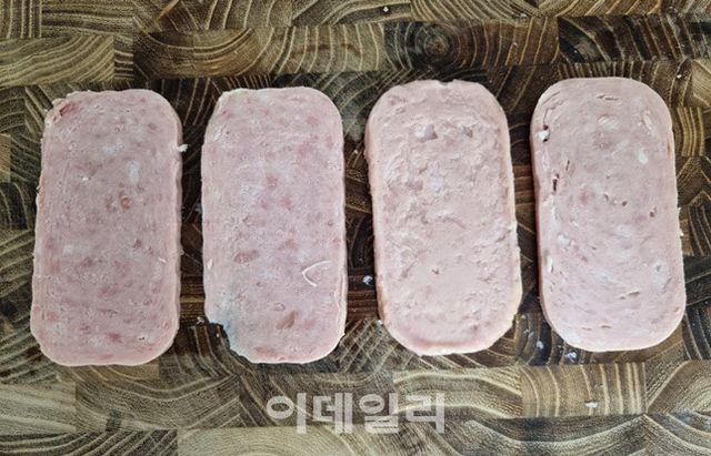 먼저 굽는 방법으로 맛을 비교했다. 가장 큰 차이는 식감과 짠맛의 정도다. 뺵햄은 스팸을 넘어설 정도의 강력한 짭조름함이 있다. 처음 먹으면 혀가 얼얼해질 정도다. 여기에 특유의 육향 풍미가 맴돈다. 밀도가 좀 더 단단한 편이다. 입안에서 녹는다기보다 부서지는 느낌이다.