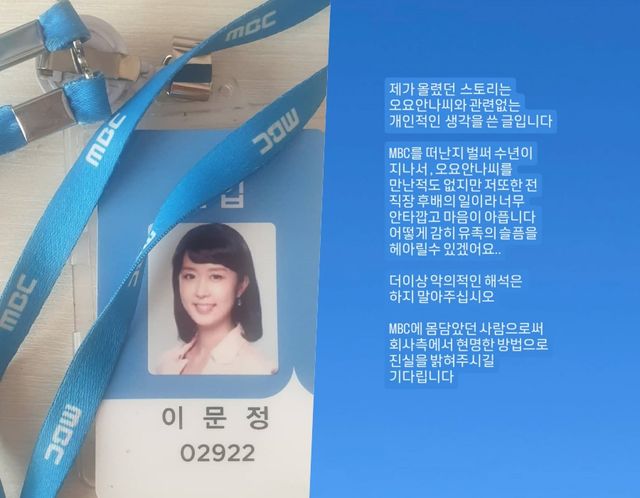 그는 이어 "더이상 악의적인 해석은 하지 말아주십시오"라며 "MBC에 몸 담았던 사람으로서 회사 측에서 현명한 방법으로 진실을 밝혀주시길 기다립니다"라고 덧붙였다.