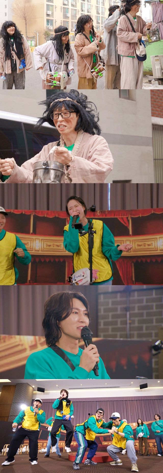 (엑스포츠뉴스 이예진 기자) '런닝맨' 멤버들과 게스트가 거지 분장을 한 채 축하공연을 이어간다.