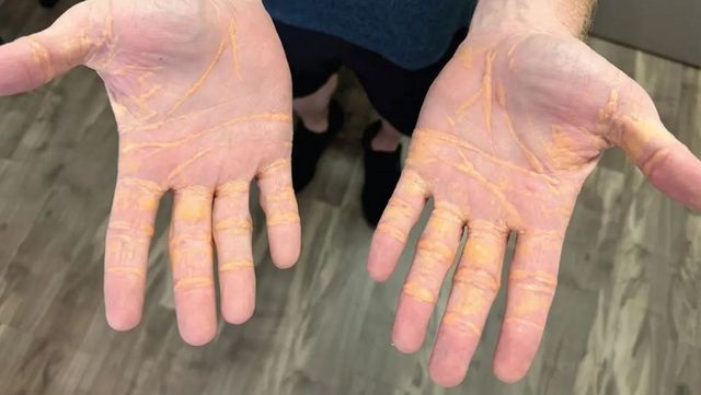 한 남성이 8개월 동안 치즈, 햄버거 패티, 버터만 섭취했다가 손에 노란색 줄이 생기는 질환을 겪은 사례가 전해졌다.