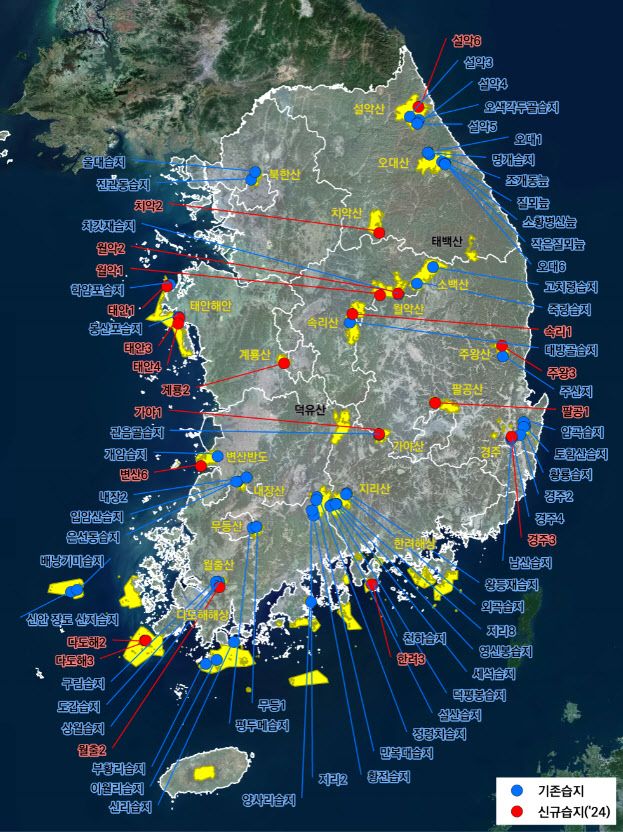 국립공원공단은 최근 발견된 습지를 포함한 전체 습지 72곳(총 면적 74만 2086㎡)에 대해 육화·건조화 진단 평가를 올해 말까지 실시해 소실이 우려되는 습지는 물막이 시설 설치 등 보호 조치를 추진한다.