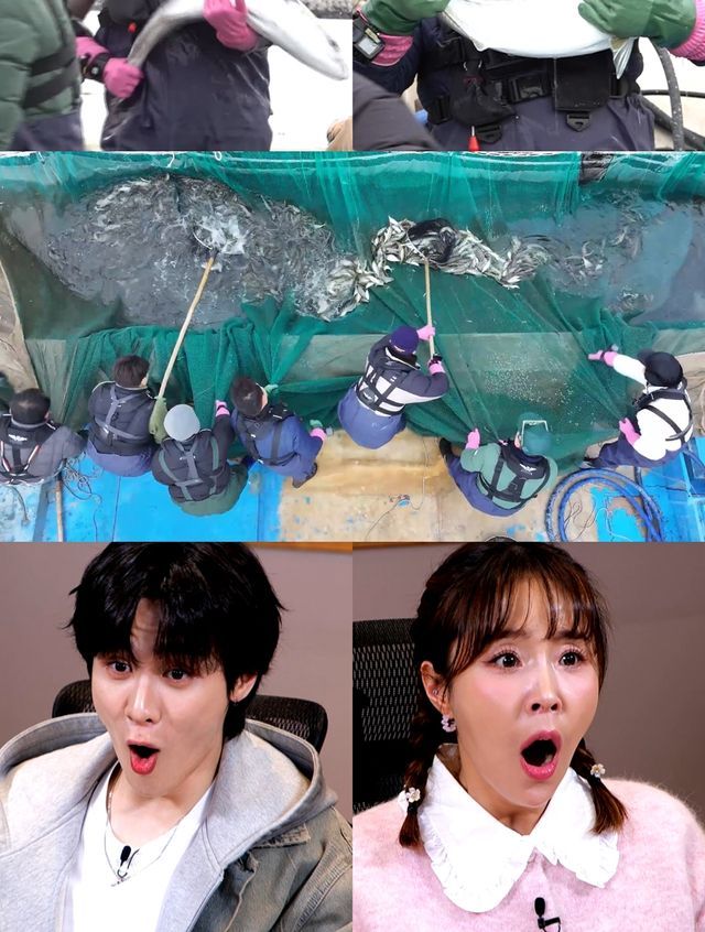 초대형 사이즈의 생선을 잡기 위해 나간 망망대해에서 처음 보는 형태의 대형 그물이 일꾼들을 압도했다는 전언. 다들 힘을 합쳐 대형 그물을 끌어 올리자, 지금까지 본 적 없는 대량의 물고기가 모습을 드러냈다는데. 이를 보던 붐과 김대호는 바다에서 한 마리라도 더 잡으려 전전긍긍했던 과거를 떠올리며 “우리 프로그램 맞아?”라고 울컥했다고 해 기대를 더한다.