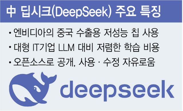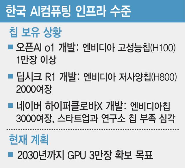 여야 정치권이 최대 10조 AI 추경에 동의하는 이유는 딥시크는 2023년 설립된 스타트업이지만 엔비디아 저사양칩(H800) 2천여개를 보유한 반면, 국내 스타트업들은 칩을 구경하기 어렵기 때문이다. 국내 최대 AI 기업인 네이버가 3천장 정도 가지고 있을 뿐이다.