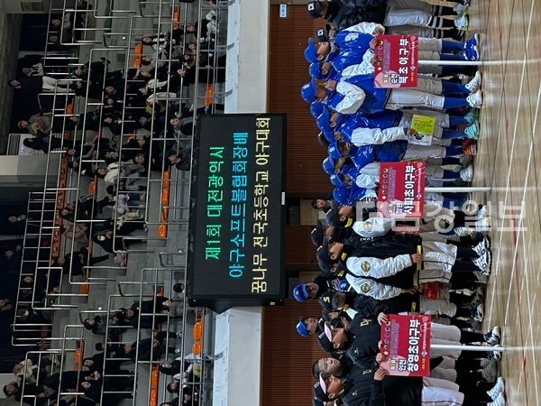 ▲ 지난 1일 한밭체육관에서 대전광역시야구소프트볼협회장배 꿈나무 전국초등학교 야구대회 개회식이 진행되고 있다. 대전시체육회 제공