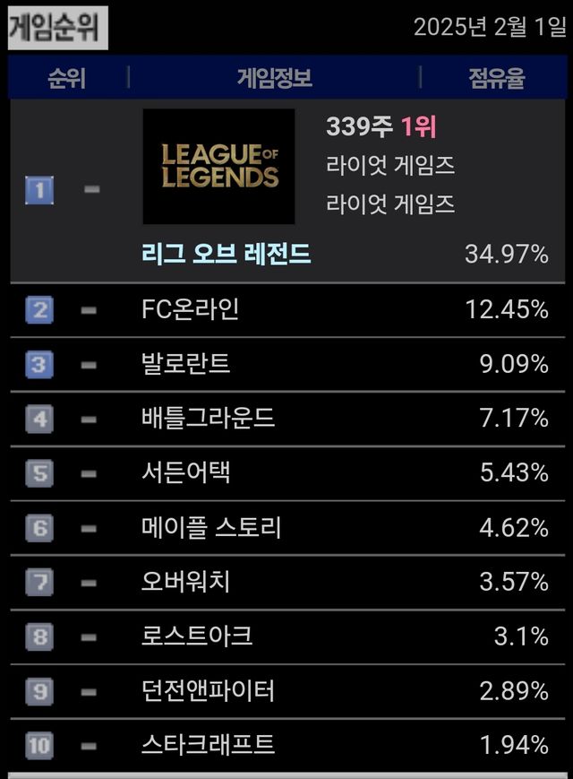 1위 롤