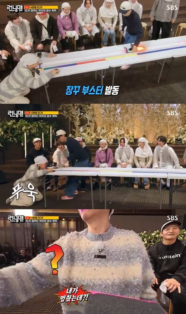 한편 지석진이 게임을 진행할 때에는 눈을 감은 지석진 몰래 유재석이 RC카를 수동으로 조종해 지석진의 얼굴에 부딪히게 하는 장난을 쳤다. 지석진은 이를 까맣게 모른 채로 "내가 (RC카를) 멈췄는데? 카메라로 찍었어. 봐 봐"라며 억울해 해 모두를 웃게 했다.