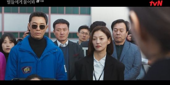 2일 방송된 tvN 토일드라마 '별들에게 물어봐' 10회에서는 박동아(김주헌 분)가 이브 킴(공효진)과 공룡(이민호)을 구조해 인터뷰하는 모습이 그려졌다.