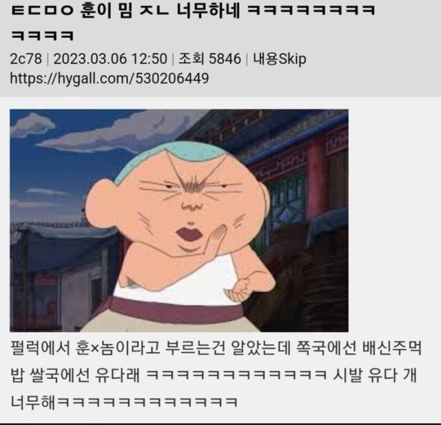 한국 : 훈발놈일본 : 배신주먹밥미국 : 유다