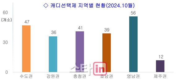 지역별로는 영남권이 56곳으로 가장 많았고 △수도권 47곳 △충청권 41곳 △호남권 39곳 순이었다. 강원도는 전체 골프장 63곳 중 36곳(57.1%)이 캐디선택제를 도입해 비중 57.1%로 전국에서 가장 높았다. 반면, 수도권 골프장은 캐디선택제 도입 골프장이 전체 25.8%로 전국에서 가장 낮았다.