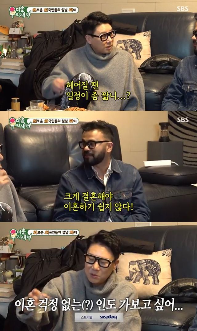 이상민은 럭키에게 "인도결혼은 저녁에 시작해서 며칠 동안 정성들여 했다가 헤어질 땐 일정이 좀 짧냐"며 인도의 결혼 및 이혼 문화에 대해 물었다. 이에 럭키는 "인도에서는 농담으로 '크게 결혼해야 이혼하기 쉽지 않다'고 말한다"면서 인도의 이혼율이 낮다고 말했고, 이상민은 "그래서 (인도에) 가고 싶다"고 말하기도 했다.