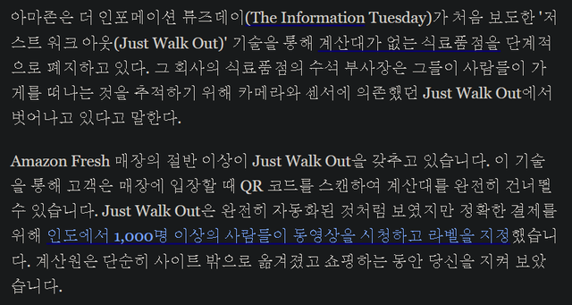 무슨 AI 첨단 기술로 돌아가는 게 아니라 인도인 1000명 이상이 CCTV 보면서 라벨 지정하는 거였음.