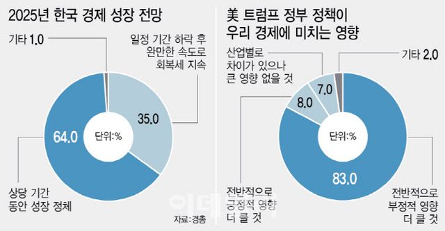 하지만 지금은 탄핵 등 정국이 안정화한다고 해도 성장률 전망치가 다시 뛰어오를 것으로 장담하기가 어렵다. 도널드 트럼프 미국 대통령이 글로벌 관세 전쟁을 본격화했기 때문이다.