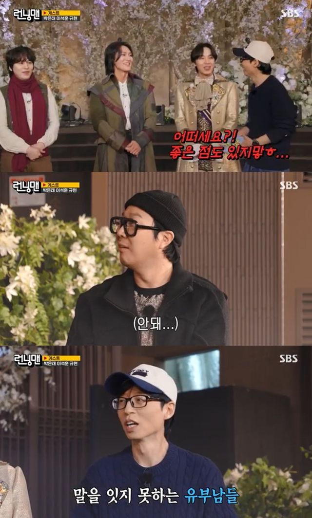 2일 SBS ‘런닝맨’에서는 게스트로 뮤지컬 '웃는 남자'의 박은태, 규현, 이석훈이 등장했다.