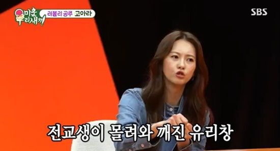 이어 고아라는 남달랐던 학창시절 인기를 떠올리며 '학창시절에 친구들이 몰려서 유리창이 깨지기도 했다더라'는 말에 "여고를 다녔는데, 선후배 할 것 없이 사람들이 다 몰리니 사람들이 타고 타고 올라가다 2층 유리창문이 밀려서 깨지기도 했다"고 얘기했다.