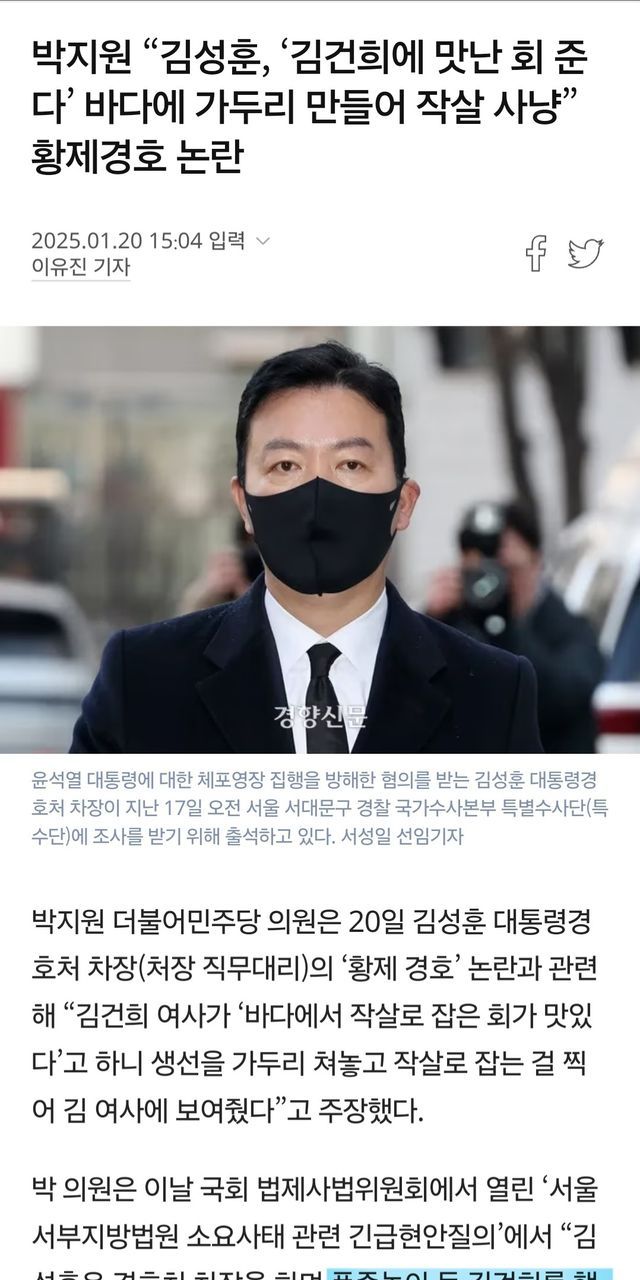 이때 김건희가 "회는 바다에서 작살로 잡는 회가 맛있다"는