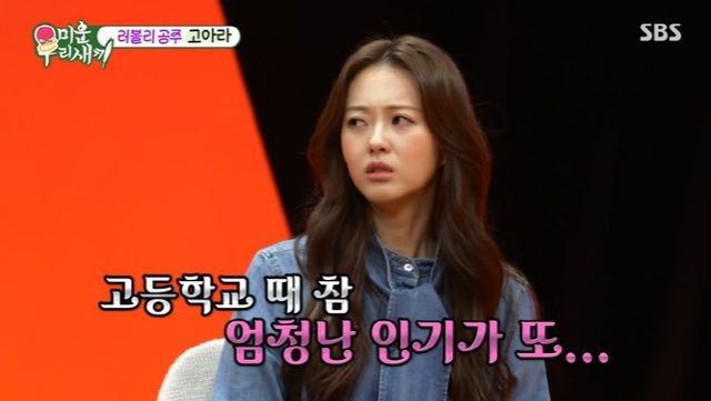 이어 고아라는 “학창 시절에 고아라 씨 때문에 친구들이 몰려들어 교실 유리창이 깨졌다고 하더라”는 질문에 “여고였다. 선배, 후배 할 것 없이 사람들이 몰려서 2층 유리창이 작았는데 그게 깨졌다”며 “같은 반 친구들이 이동하고 그럴 때 동그랗게 둘러싸서 이동했다. 고등학교 때 엄청난 인기가 있었더라”고 말해 웃음을 안겼다.