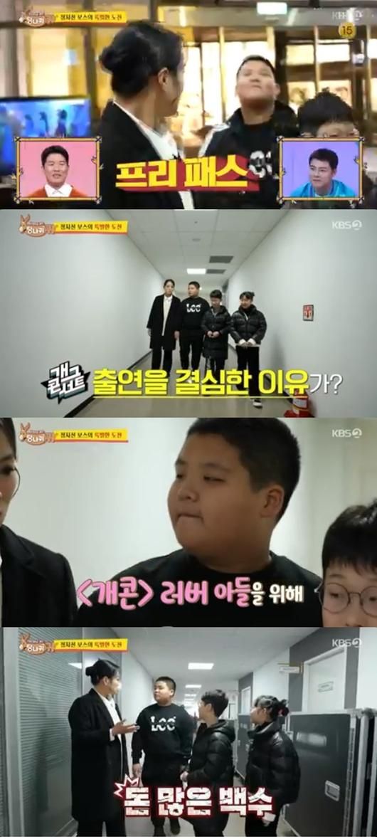 정지선은 11살 아들 우형과 아들의 친구들과 함께 '개그콘서트' 출연에 나섰다. 방송국으로 향하는 길, 정지선은 아이들에게 "너희도 나처럼 열심히 살아야 한다. 미래를 꿈꿀 나이다"라며 격려를 아끼지 않았다.