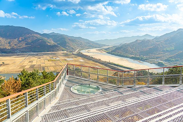 평사리 들판과 섬진강, 소백산맥의 능선을 파노라마로 펼쳐 놓은 조망 명소가 최참판댁 근처에 하나 더 있다. 섬진강 수면을 기준으로 150m 높이에 설치된 스타웨이하동은 삼각형 형태의 공중 보행시설(스카이워크), 카페 등을 갖춘 전망대다. 툭 튀어나온 전망대 주변으로 시야를 방해하는 나무와 구조물이 없어 악양평야와 주변 풍경을 마음껏 즐길 수 있다.