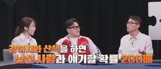 이에 김태훈은 "최근 연구 조사에 의하면 강아지와 산책을 하면 낯선 사람과 이야기할 확률이 200배 이상 높다고 한다. 자기들이 강아지에 빙의해서 말하니까..."라며 강아지와의 산책을 추천했다. 이에 김풍은 "연애를 위해 반려동물을 키울 수는 없지 않냐"라며 반박했다.