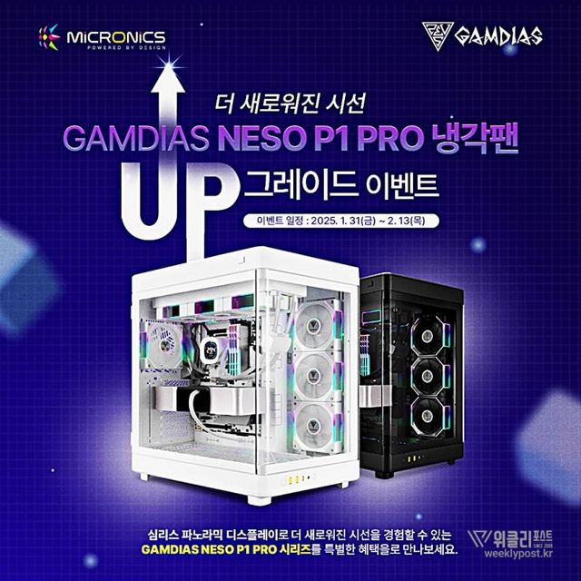 마이크로닉스가 겜디아스 네소 P1 프로 시리즈 구매자를 대상으로 쿨링팬을 추가 증정한다. 네소 P1 프로 시리즈를 구매하면 겜디아스 아이올로스 P2(AEOLUS P2) 냉각팬 1팩(1개)을 제품 색상에 맞춰 지급한다. 기한은 2월 한 달간이다.