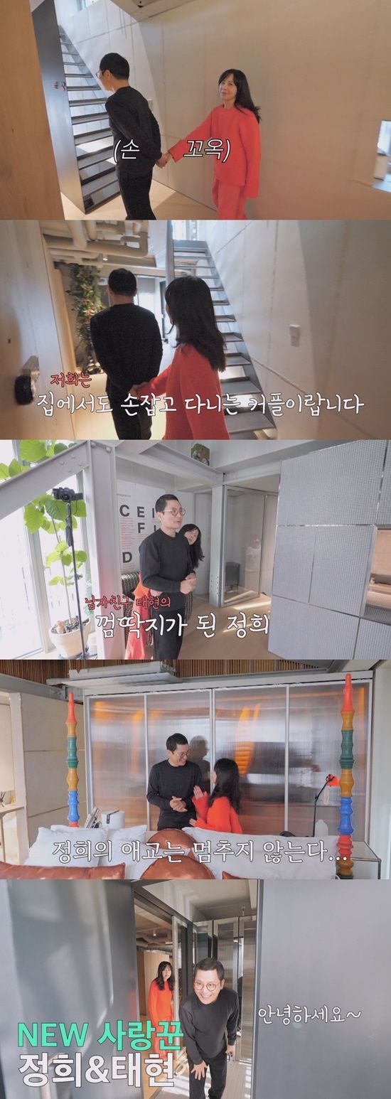 '조선의 사랑꾼' 제작진을 반갑게 맞이한 서정희는 곧바로 '6살 연하' 김태현이 내민 손을 잡고 집 안으로 들어섰다. 이어 그녀는 "저희는 집에서도 손잡고 다녀요"라며 애정을 드러냈다.