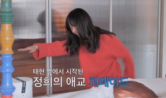 이후 서정희는 한참 집 소개 중인 남자친구 김태현의 뒤에 꼭 붙어 기웃거리거나 공중 헤엄 시범을 보이는 등 애교 만점인 모습을 보였다.