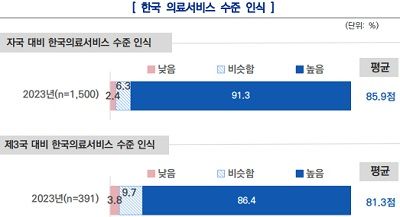 한국 의료서비스를 타인에게 추천할 의향이 있다는 응답률도 전년보다 2.8%포인트 오른 97.4%를 기록했다.