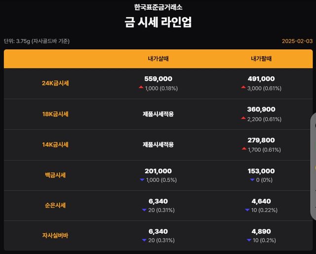 순금(24K) : 매입가 55만 4000원 / 매도가 49만 8000원