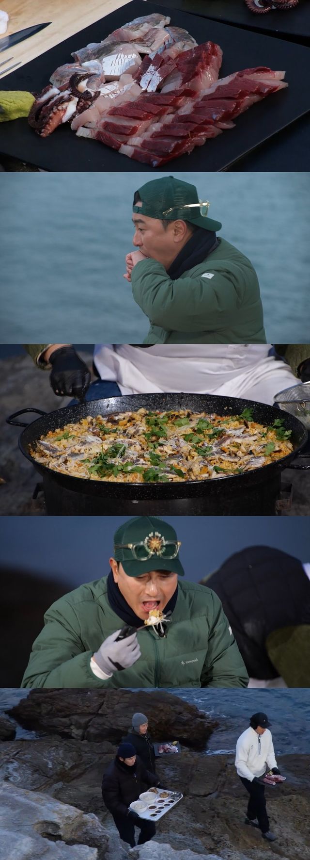 이날 무인도 레스토랑은 10명의 단체 손님을 받아 바쁘게 움직인다. 이를 위해 일꾼들은 ‘푹다행’ 역사상 최대 사이즈의 생선을 잡아 정호영, 오세득이 투셰프 체제로 빠르게 음식을 준비한다.