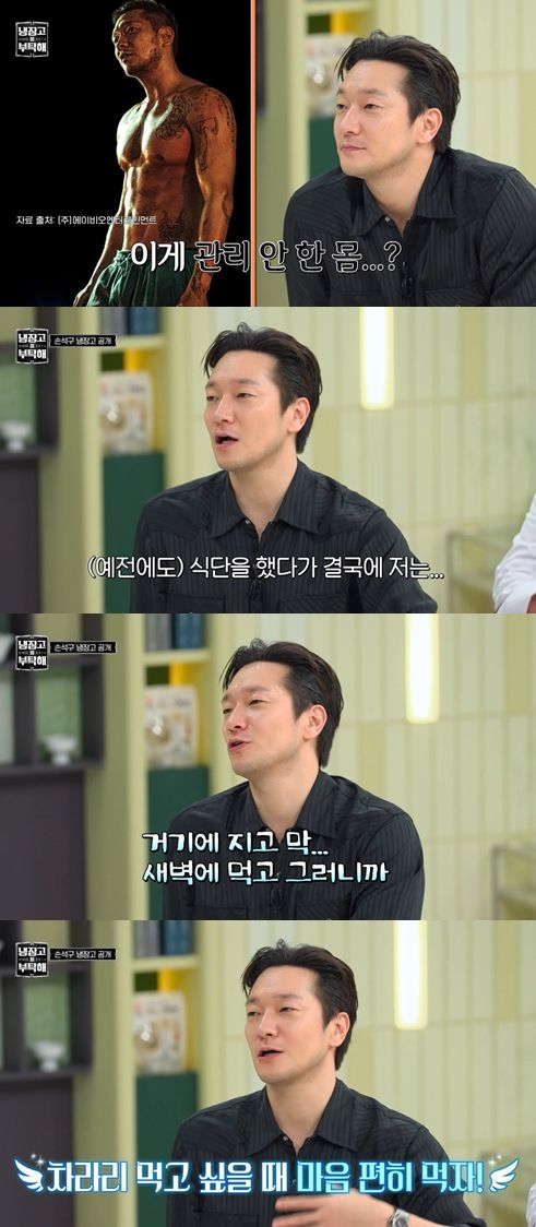 손석구는 "저녁 9시까지 식단을 했다가 결국에 거기에 지고 막 새벽에 먹고 이러니까 차라리 먹고 싶을 때 먹는다. 대신 운동을 더 많이 하는 주의다"라고 밝혔다.