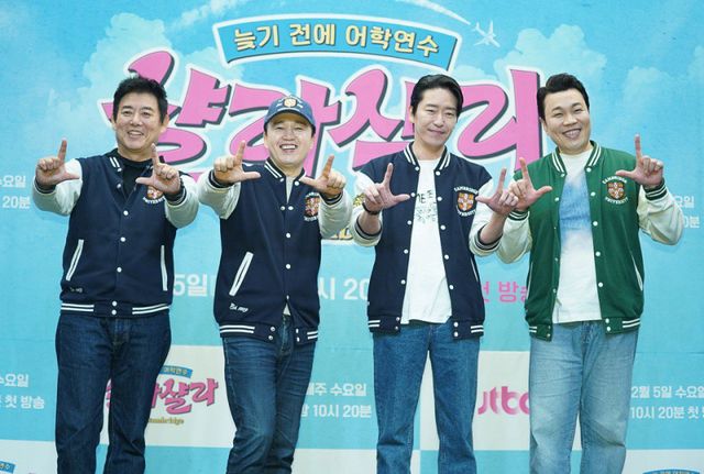 3일 오후 서울 마포구 상암동 스탠포드호텔에서 JTBC 새 예능 ‘늦기 전에 어학연수 샬라샬라’(이하 ‘샬라샬라’) 제작발표회가 진행됐다. 행사에는 배우 성동일, 김광규, 엄기준, 신승환, 연출을 맡은 정승일PD, 정윤아PD가 참석했다. 배우 장혁은 지방 촬영 스케줄로 불참했다.