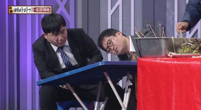 다음으로 '해바라기 포장마차' 코너에서는 분노를 참아야 하는 포장마차 가게 직원 이정수가 분노를 참지 못하는 상황을 자꾸 맞닥뜨리는 모습이 그려졌다.