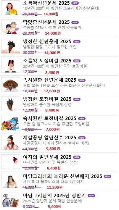 • 소름쫙 신년운세 2025: 나에게 일어날 모든 일을 알 수 있는 상품