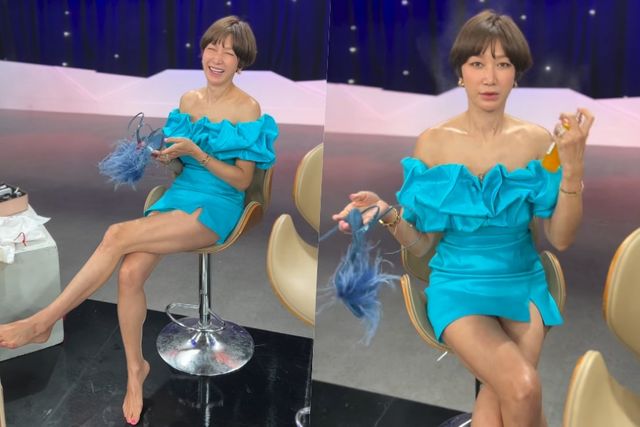 공개된 영상 속 변정수는 블루 오프숄더 미니 드레스를 입고 홈쇼핑 방송을 준비하고 있는 모습이다. 군살 없는 몸매로 의상을 소화한 변정수는 다리를 꼰 채 늘씬한 각선미를 자랑해 눈길을 끌었다. 초미니 의상마저도 굴욕 없이 소화해낸 변정수의 바비 인형 같은 몸매가 부러움을 자아낸다.