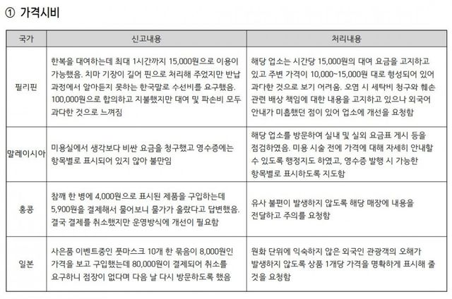 그 외에도 공항, 철도, 여행사, 버스 등 관련 다양한 불만 신고 사례가 있음